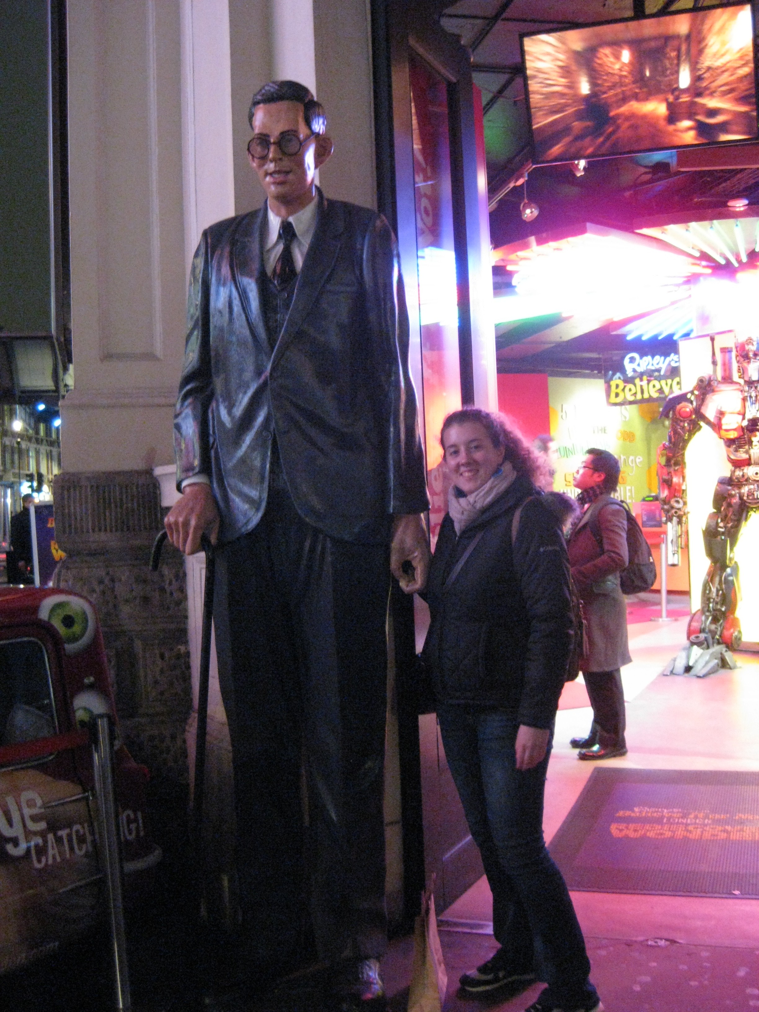 After our yummy meal, we walked back along the Thames. Seeing London at night was beautiful! The bridges light up with lovely colors and seeing the buildings at night was also beautiful. Our last stop, at the recommendation of our landlord, was The George Tavern. This pub apparently marks a spot where Amy Winehouse made her debut and Justin Timberlake shot a music video. The place had a nice atmosphere with candles (in old alcohol bottles – which was pretty cool) and music. A band was setting up, but being that it was a (not so) hopping Wednesday night, they weren’t the, how I should I say it, Grade A band. Once they started playing it was honestly more of an art performance than music. The had a slideshow projected onto the wall and were essentially playing interpretive music to the abstract images shown. At one point I thought the Mothman from Mothman Prophecies would show his ugly self – really, some of the instrument sounds resembled creepy satanic whispers. So while we weren’t necessarily the best crowd to be in that bar, at least on that night, it was certainly an experience. At the end of the night, we headed back to our apartment (no Bitchin’ Kitchen tonight) and packed for our morning flight to Dublin!